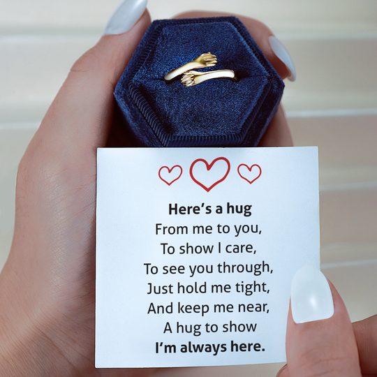 I was looking for a unique gift for my sister, and this hug ring was perfect! The shipping was lightning fast, and the customer service was friendly and responsive. Thank you!