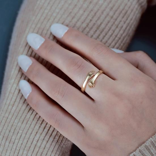 The Hug from Me to You Ring is designed to fit most sizes with its adjustable feature, making it suitable for sizes 6 to 11. The ring is available in both gold and silver, giving you the flexibility to choose the perfect color for your loved one. The ring’s design features two hands holding each other in an embrace, representing a hug from afar, reminding your loved ones that you are always thinking of them.